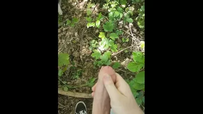 enjoying the sun and jerking my big cock in the woods