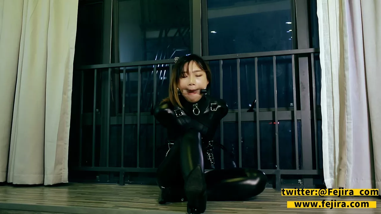 Fejira com The girl in leather who was locked with a mask
