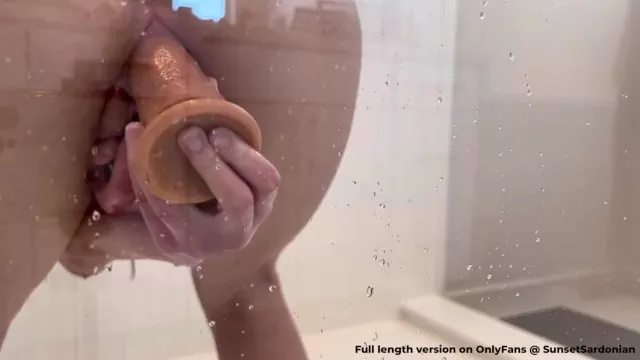 Masturbating with my clear dildo on the shower door ????