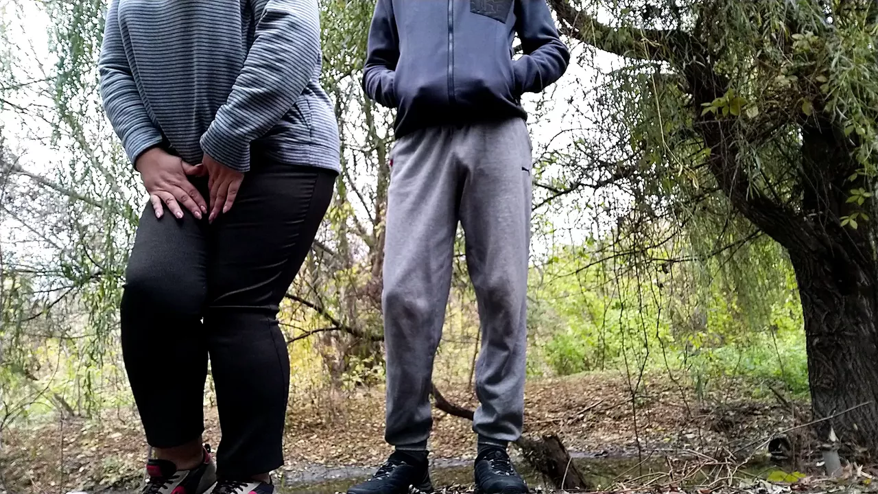 Milf after pissing on the street takes me away