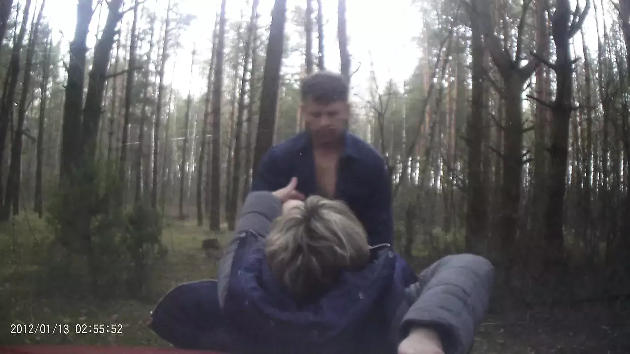 the husband fucks the girl and ends up in the forest.
